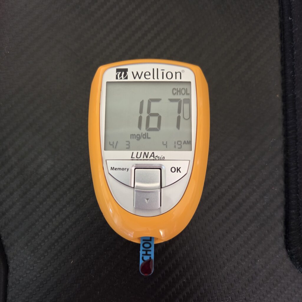 Hoy lo tengo a esta hora 17:20 en 167 mg/dL y he ingerido ayer 300 gramos de carbohidratos y hoy no he comido nada de momento. Podría ser que hacer deporte con este colesterol, las células se traguen lo que expulsan como desechos, al no tener grasas los hematíes o producir más ácido úrico y bilis en el hígado, que oscurece las heces.