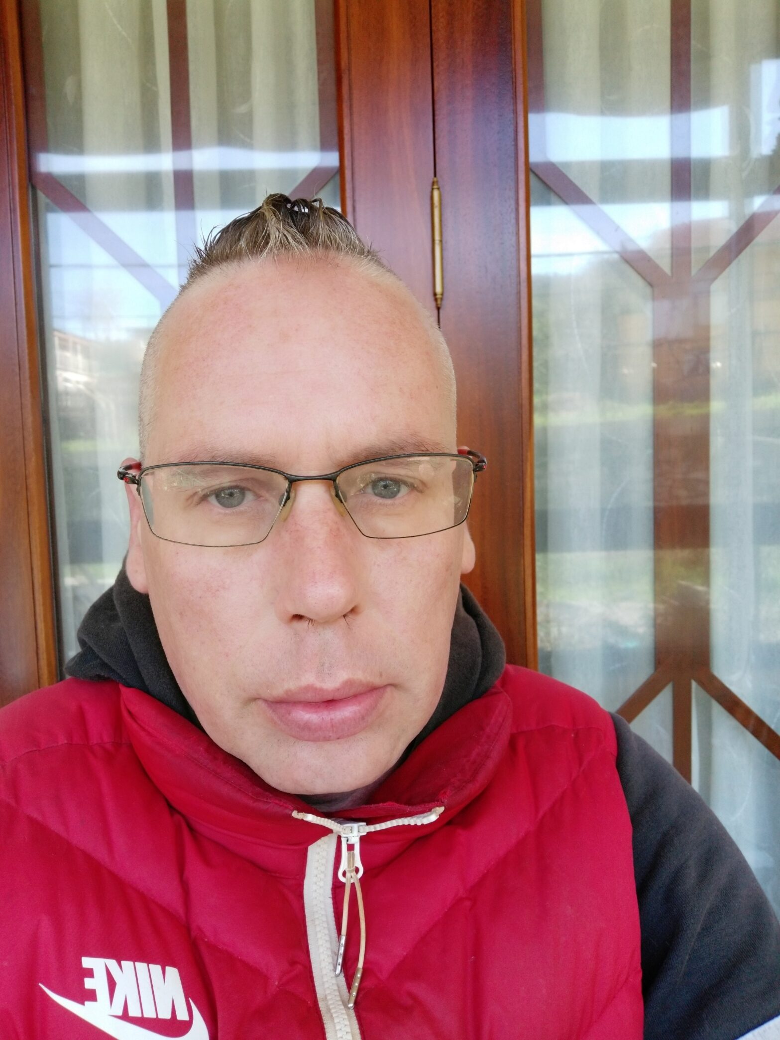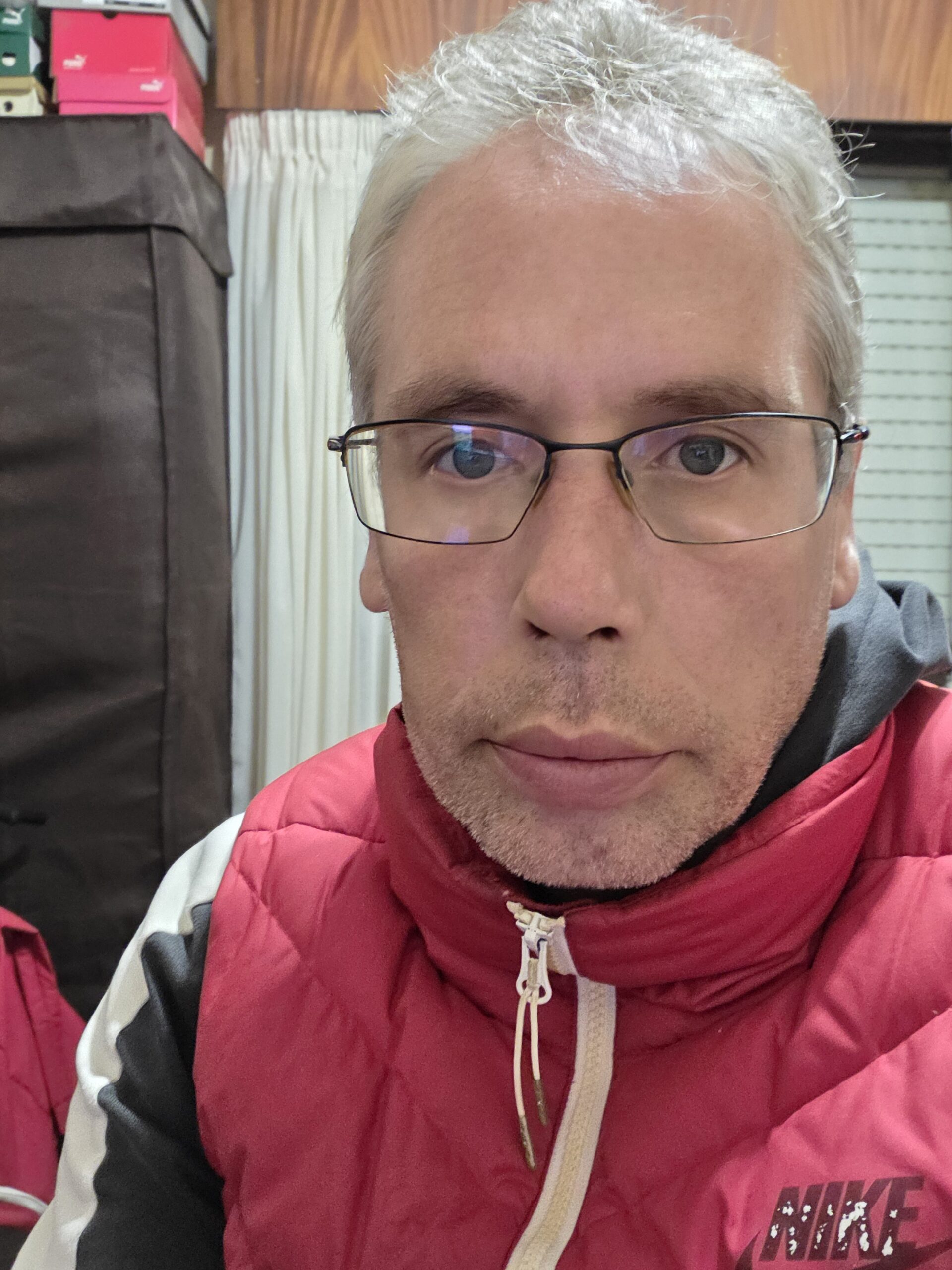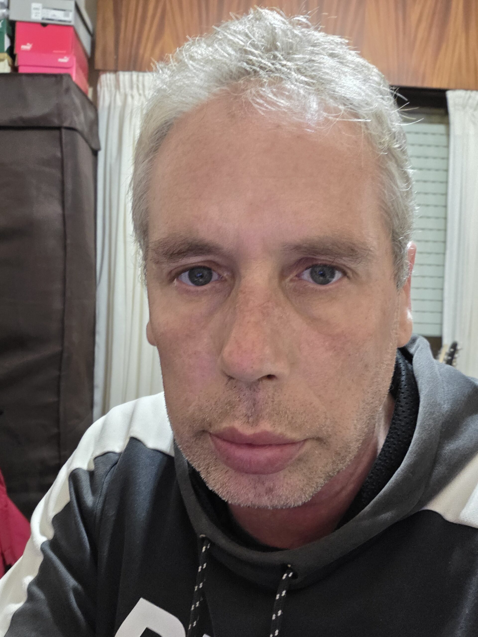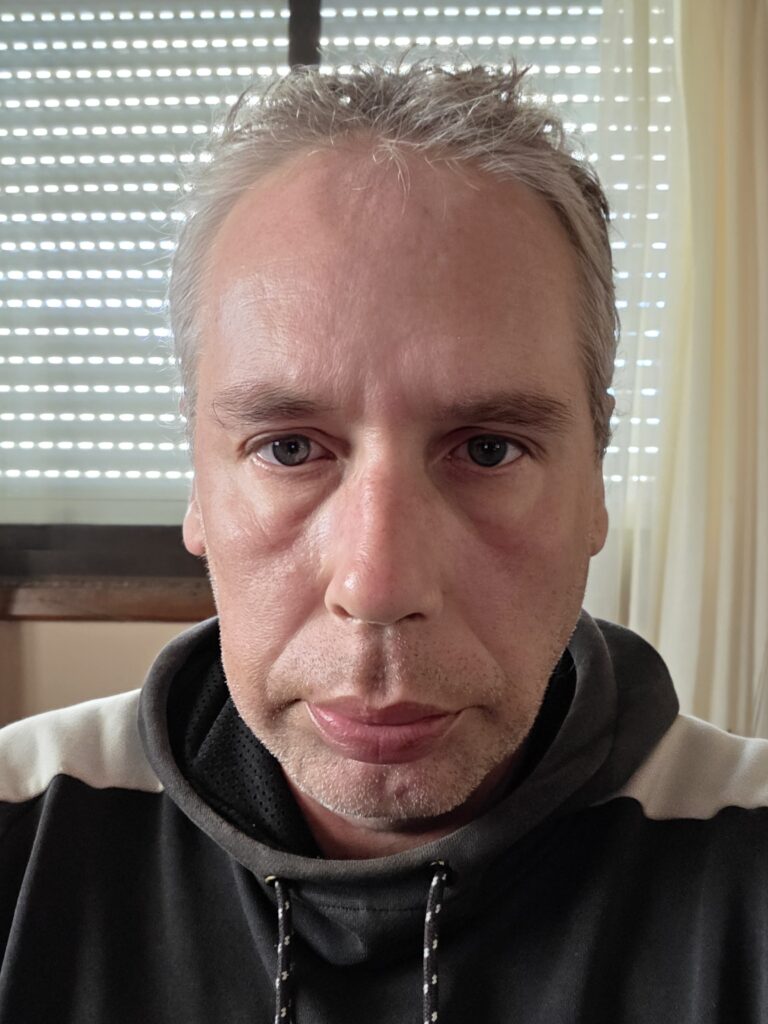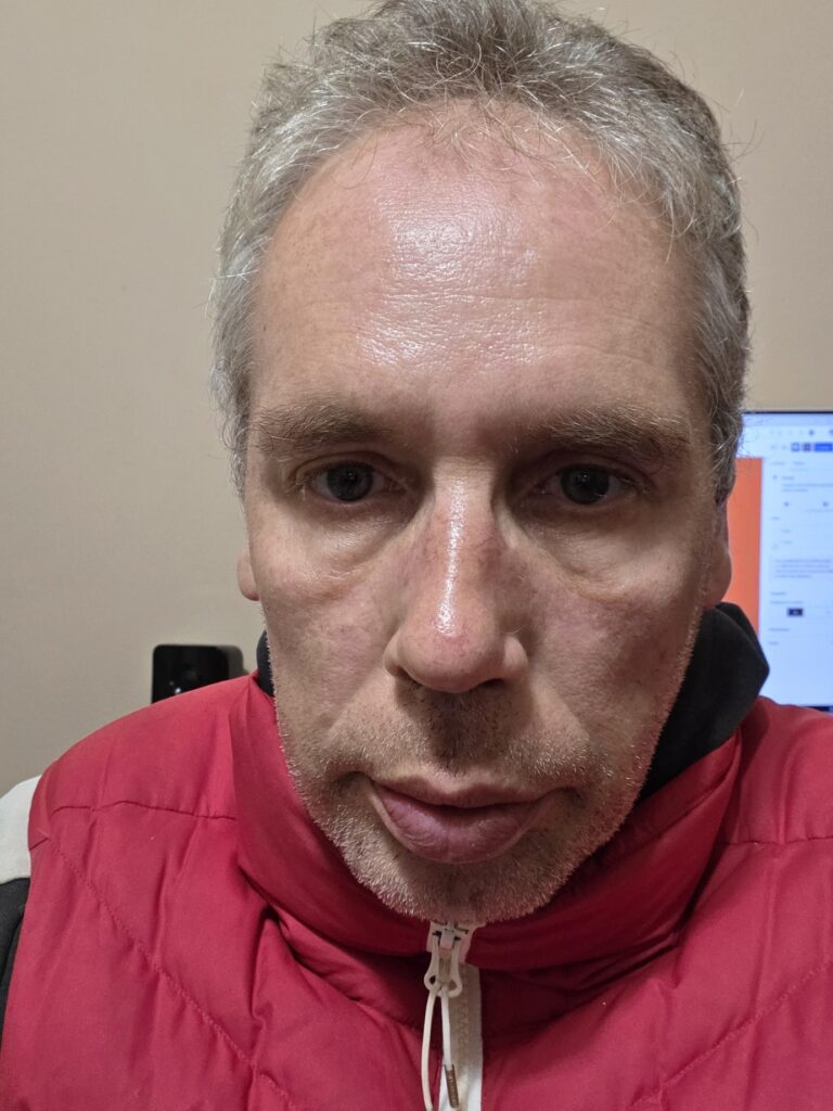 Foto con ataque de ansiedad. La ansiedad me provoca un poco las bolsas o ojeras. Con que gas no sé pero lo que respire, hasta esta hora no tenía buena pinta. El rojo es que llega mucha sangre al cerebro, para dar guerra toda la noche o no.