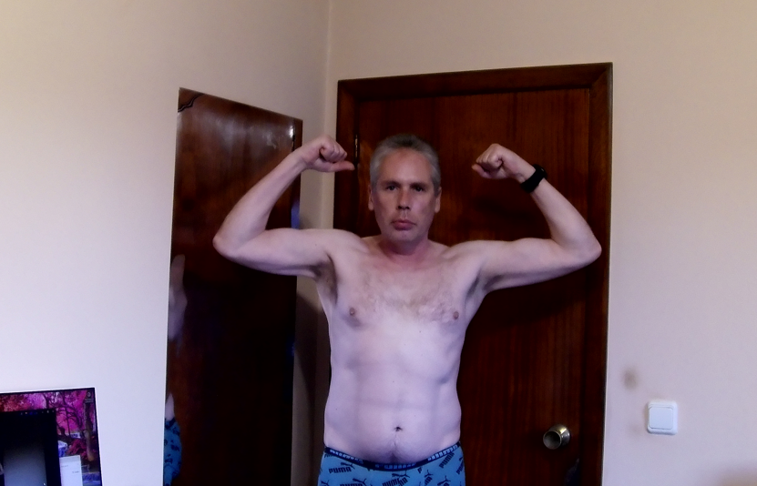 Estaría mejor con un par de retoques, menos grasa adnominal, afeitarme el pecho y sin fumar nada, que me escuece un poco en el cuello y un poco del pecho y un día sin fumar ya me queda el cuello y el pecho blanco.