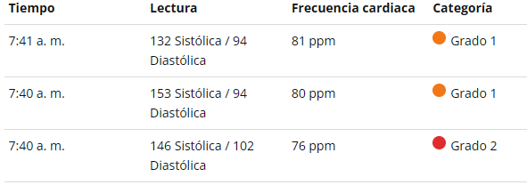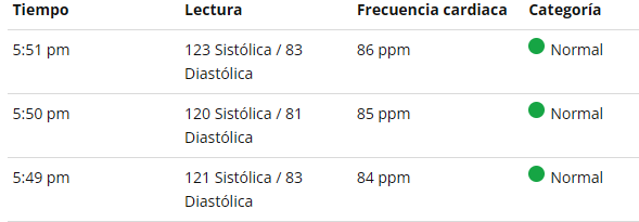 He comido y dormido una pequeña siesta y he medido la presión arterial y este es el resultado.